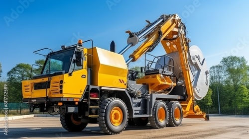 © Media Srock, Fototapeta premium Construction Concept: Utilizing Roller Compactors for Road Construction and Asphalt Finishing.