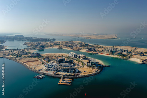 © sablinstanislav, Naklejka premium Construction Dubai Palm island from above.