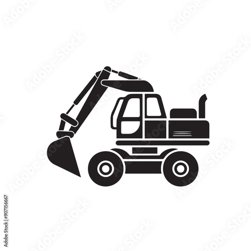 © Iryna, Naklejka premium Construction equipment in cartoon, doodle style . Image for t-shirt, web, mobile apps and ui. Isolated 2d vector illustration in logo, icon, sketch style, Eps 10, black and white. AI Generative