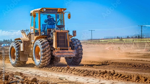 Fototapeta premium Construction Equipment Working on a Construction Site.