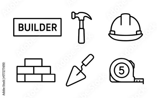 © 123levit, Fototapeta premium Construction icons set: tools and equipment in outline style