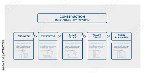 © Atakan, Obraz premium Construction infographic design. Timeline with 5 steps, options, squares. Vector template