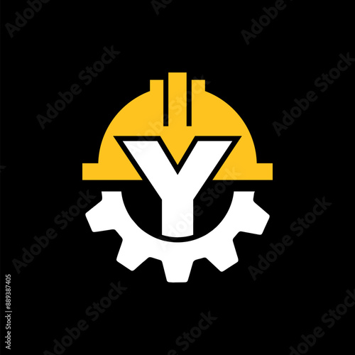 Fototapeta premium CONSTRUCTION LOGO GEAR HELMET VECTOR WITH LETTER Y