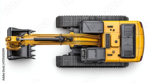 © Mongkol, Fototapeta premium Construction machine work realistic yellow excavator lift loader aerial view industrial environment