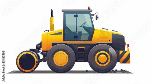 Fototapeta premium Construction machinery bulldozer on white background with bulldozer written industrial equipment for building, engineering, and development