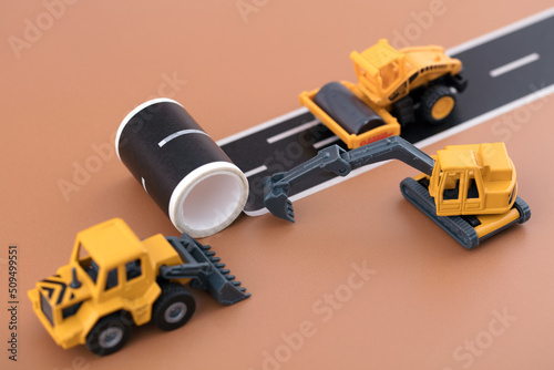 Obraz premium Construction machinery vehicle is building a road
