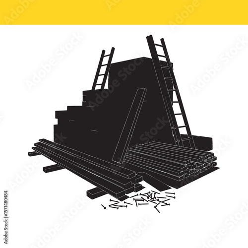 © LaxmiRani, Fototapeta premium Construction Materials Lumber, Plywood, and Tools for Building Projects