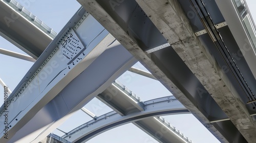 Fototapeta premium Construction of a highway overpass, close-up on structural steel, detailed and clear
