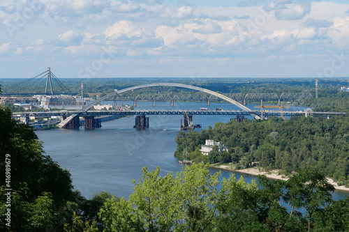 Fototapeta premium Construction of a new big bridge over a Dnieper river in Kyiv, Ukraine
