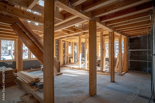© Valeryi, Fototapeta premium Construction of a new house. Construction of a wooden frame house.