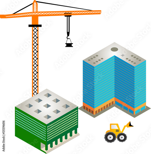 © idmaksim, Fototapeta premium Construction of buildings white background