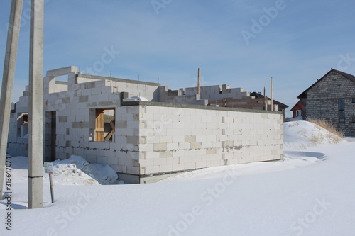 Obraz premium construction of the house from sibit on the project of a cottage in the winter