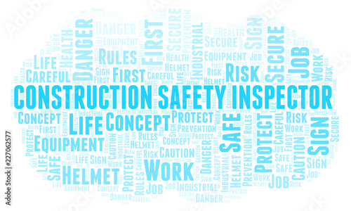 © sharafmaksumov, Obraz premium Construction Safety Inspector word cloud.