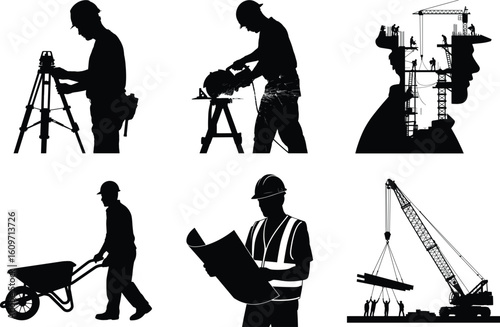 Obraz premium Construction Silhouette Bundle, Construction Vector Art isolated on a White Background. Construction Worker SVG graphic illustration.