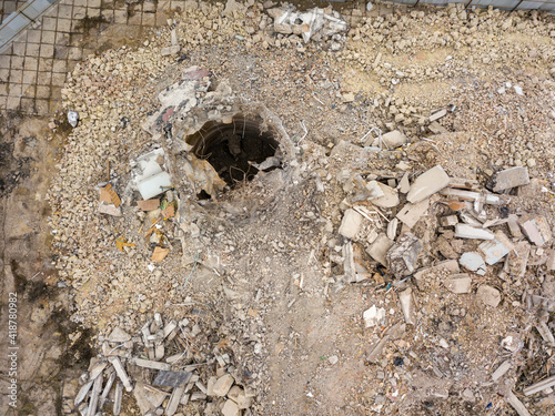 Fototapeta premium Construction site in the city. Aerial drone view.