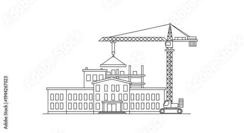 Fototapeta premium Construction site with crane building structure line art illustration