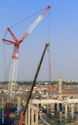 Fototapeta premium Construction site with many construction cranes.