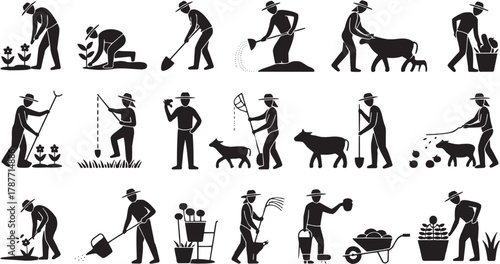 © jonwid, Naklejka premium Construction teamwork icons set. Builder, worker, teamwork, construction, repair, equipment, tools, safety, site, development, project, teamwork, engineering, architecture, worker, maintenance, plan,