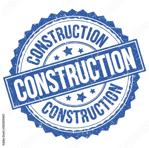 Fototapeta premium CONSTRUCTION text on blue round stamp sign