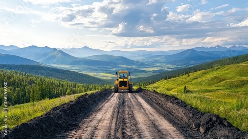 Naklejka premium Construction Vehicle on a Scenic Mountain Road