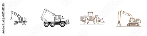 © R Studio, Naklejka premium Construction Vehicle Sketches: Vintage Digger and Bulldozer Set
