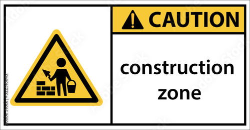 © Camac, Obraz premium Construction warning sign Use caution when walking through.Sign caution
