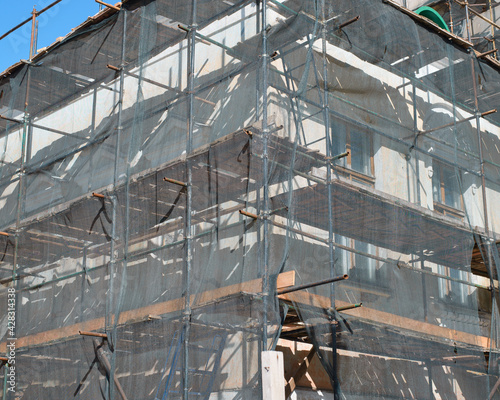 Fototapeta premium Construction work, reconstruction of an old building, restoration of the facade
