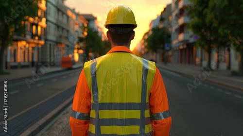 © Katawut, Fototapeta premium Construction Worker at Sunset