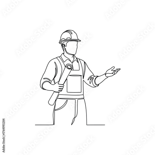 © MdAbuShaem, Obraz premium Construction worker holding plans silhouette