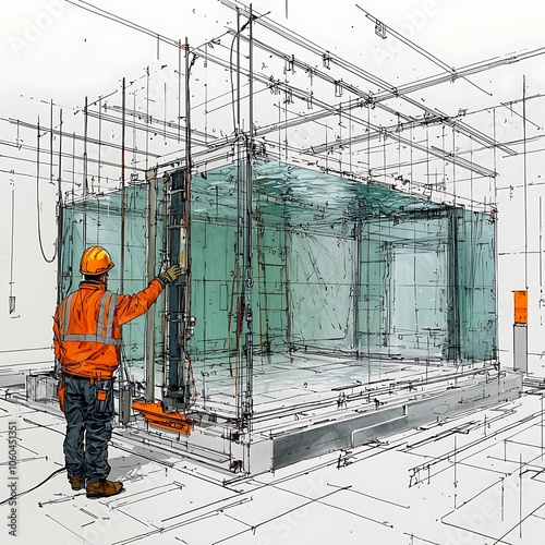 © Woranuch, Fototapeta premium Construction Worker Inspecting a Glass Structure.