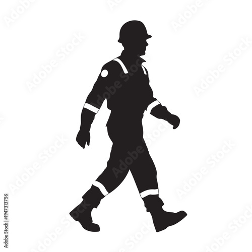 Fototapeta premium Construction Worker Silhouette Walking Isolated On White For Industry Concepts