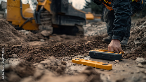 © Allie, Fototapeta premium Construction Worker Using Ground Penetrating Radar