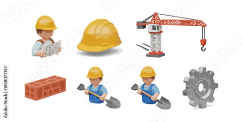 Fototapeta premium Construction workers and equipment illustration