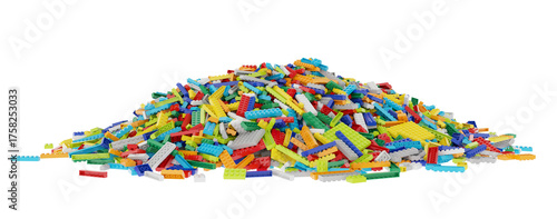 © Zahaoha, Naklejka premium Constructor set (Lego like) pile isolated transparent background 3d rendering PNG