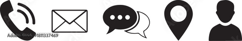 Fototapeta premium Contact icons: phone, email, chat, location, people silhouette.