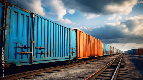 © Anoo, Fototapeta premium Container box from cargo ship for import-export, logistics concept. Sea containers for transporting goods.