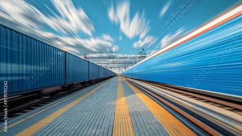 © Neda Asyasi, Obraz premium Container freight train. Highspeed cargo train passes over the rails