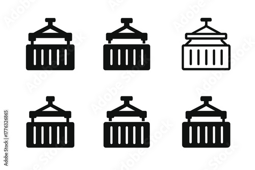 Fototapeta premium Container Lift Logo Variations. Material handling at industrial sites. Set Logo of Material handling at industrial sites: Container lift spreader. Icon set.