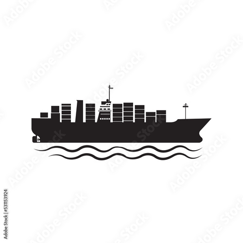 Obraz premium Container loaded cargo ship icon | Black Vector illustration |