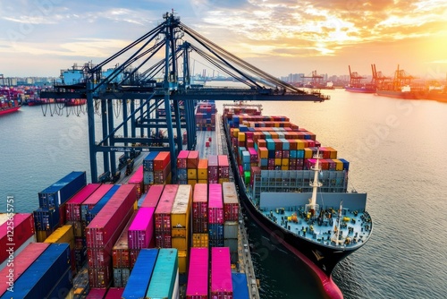 © talkative.studio, Naklejka premium Container Ship Docking at Sunset Global Trade