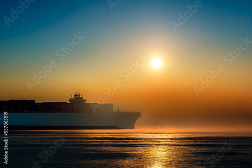 Fototapeta premium Container ship or cargo ship on the sea, symbol of international trade and globalization