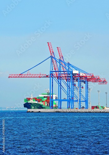 © Unkas Photo, Fototapeta premium Container ship under port crane