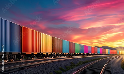 © mamun, Fototapeta premium containerized freight train wagon against a backdrop of the sky, Generative AI.