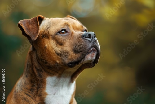 © anatolir, Obraz premium Contemplative brown dog poses with a vivid autumnal blur in the background