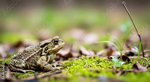 © Mobiles, Fototapeta premium Contemplative Common Toad Wide-Angle with Overcast Light