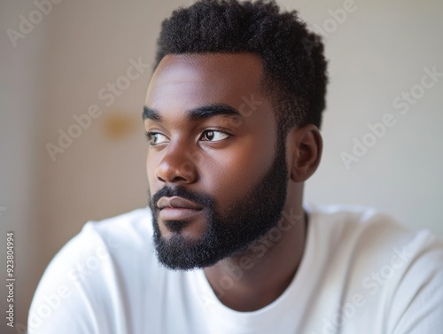 Obraz premium Contemplative Young Man with Short Hair, Looking Deeply into the Distance