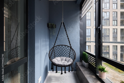 Obraz premium Contemporary balcony space featuring tranquil decor and scenic views