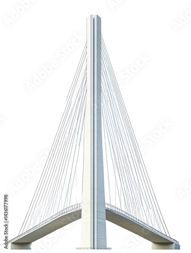 © yendisupiandi, Obraz premium Contemporary cable-stayed bridge design, a minimalist architectural marvel, emphasizing structural elegance and visual harmony against an empty canvas