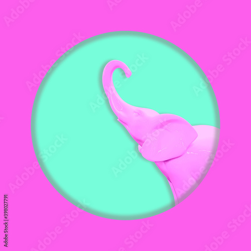 © Chetgal , Obraz premium Contemporary collage. Pink elephant on a turquoise background. Art concept, abstraction.