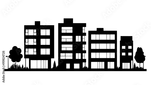 Obraz premium Contemporary complex with a combination of office spaces, retail stores, and residential apartments, vector illustration art